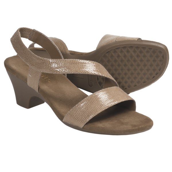 A week ago. I'm looking for information on the Aerosoles Brasserie Sandals - Ankle Strap (For Women) with a little bit of information is as follows: CLOSEOUTS . Aerosoles' Brasserie sandals kick up the edge factor with lizard-embossed synthetic leather upper and a curvy ankle strap. Plus, a low heel and foam-cushioned footbed offer long-lasting comfort. Available Colors: RED LIZARD, TAN LIZARD. Sizes: 6, 6.5, 7, 7.5, 8, 8.5, 9, 9.5, 10. Read more Compare prices from various online stores: Here