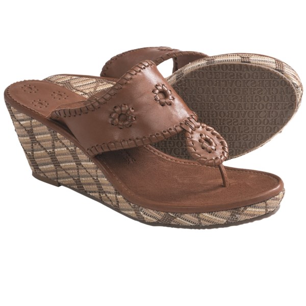 Jack Rogers Straw Mid Wedge Sandals - Leather (For Women)