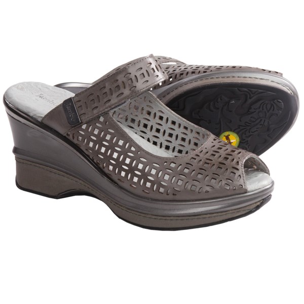 I remember a yesterday. I found Jambu Orion Wedge Sandals - Leather (For Women) selling many of the online store. CLOSEOUTS . Walk those city streets in style with Jambuand#39;s Orion wedge sandals -- comfy, backless peep-toe wedges with laser cutouts and metallic accents. Available Colors: BLACK, CHARCOAL, SADDLE, FUSCHIA, COBALT. Sizes: 6, 6.5, 7, 7.5, 8, 8.5, 9, 9.5, 10, 11. Read more >> Compare prices from different online stores