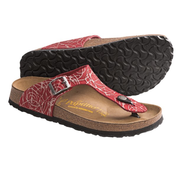 I remember a week ago. I found Papillio by Birkenstock Gizeh Hypnotic Sandals - Leather (For Women) selling at many of the online store. CLOSEOUTS . Papillio by Birkenstockand#39;s Gizeh sandals put a simplified spin on your warm-weather fashion. They boast the companyand#39;s signature suede-lined cork footbed and a thong-styled leather upper that sits snugly between the toes. Available Colors: RED, BROWN. Sizes: 35, 36, 37, 38, 39, 40, 41, 42, 43. Read more >> Compare prices from various online stores