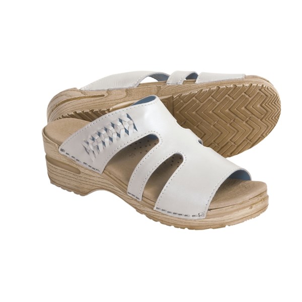 I remember the couple of days ago. I see Sanita Donna Sandals - Leather (For Women) sale at many of the online store. CLOSEOUTS . A unique woven accent on the side of these pretty leather Donna sandals from Sanita lets you step about town in comfortable style by reducing the strain on your lower back and legs. Leather upper Leather-lined footbed is perforated to promote airflow Polyurethane outsole Heel: 2" Medium width Made in Poland Visit our Shoe Sizing Guide Available Colors: GREEN METALLIC, BLUE, BLACK METALLIC, RED, WHITE. Sizes: 35, 36, 37, 38, 39, 40, 41, 42. Read more Compare prices from various online stores: Here