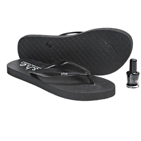 The yesterday. I search for information on the S.H.E. Smooth Sandals - Flip-Flops (For Women) with a details are briefly as follows: CLOSEOUTS . Start your day in the sun off right by slipping into S.H.E.'s Smooth sandals, the perfect flip-flops for warm-weather fun. Available Colors: BLACK, ORANGE, PINK, TURQUOISE, WHITE. Sizes: 6, 7, 8, 9, 10, 11. Read more Compare prices from different online stores: Here