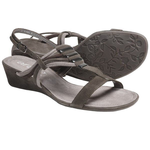 The week ago. I'm looking for information on the Ara Simone Wedge Sandals (For Women) with a little bit of information is as follows: CLOSEOUTS . Corded, undulating straps gather themselves up into a gladiator-like strap adorned with chic metallic hardware in Ara's Simone sandals -- cute and comfortable right out of the shoe box. Available Colors: TAUPE/GREY/BROWN SUEDE, BLACK LEATHER. Sizes: 5.5, 6, 6.5, 7, 7.5, 8, 8.5, 9, 9.5, 10, 10.5, 11. Read more Compare prices from various online stores: Here