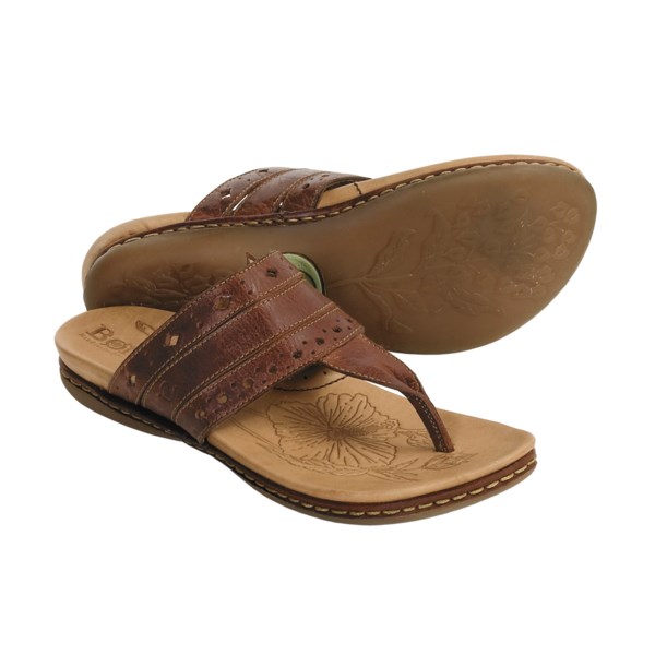 A week ago. I'm looking for information on the Born Brienne Sandals - Leather (For Women) with a little bit of information is as follows: CLOSEOUTS . Born's Brienne sandals feature a thick leather instep strap with geometric cutouts and a thong-style toe for an eye-catching, artisan-inspired look. Leather upper and lining Cushioned leather footbed with perforated arch Rubber outsole Opanka handsewn construction Medium width Made in Mexico Half sizes order up Visit our Shoe Sizing Guide Available Colors: BLACK, COGNAC, OLYMPIC. Sizes: 6, 7, 8, 9, 10, 11. Read more Compare prices from different online stores: Here