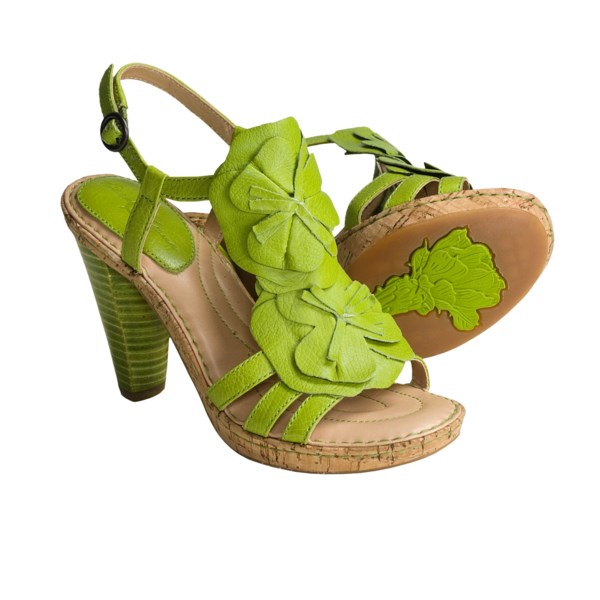 I remember the several days before. I see Born Hydrangea Sandals - Leather (For Women) sale at many of the online store. CLOSEOUTS . Born's Hydrangea sandals blossom with flowered beauty and comfortable leather with every step you take. From the Born Signature Crown Series Vegetable-tanned leather upper with floral design and lining Opanka handsewn construction for flexibility Leather-lined, cushioned footbed Rubber outsole with floral detail Leawood-wrapped stacked heel: 3" Medium width Made in China Half sizes order up. Visit our Shoe Sizing Guide Available Colors: WHITE, LEAF, BLACK, RASPBERRY, SILVER METALLIC. Sizes: 5, 6, 7, 8, 9, 10, 11. Read more Compare prices from different online stores: Here