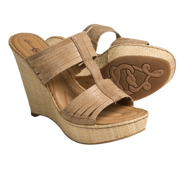 The yesterday. I search for information on the Crown by Born Didi Wedge Sandals - Leather (For Women) with a little bit of information is as follows: CLOSEOUTS . From Born's Crown collection emphasizing casual refinement, the Didi sandals feature a dramatic wedge heel with a basket weave cover, and a strappy, Roman-inspired leather upper. Available Colors: TAN WASHED VEGETABLE, GOLD METALLIC, ROSE WASHED VEGETABLE. Sizes: 6, 7, 8, 9, 10, 11. Read more Compare prices from various online stores: Here