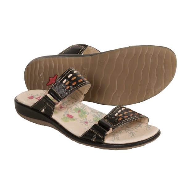 I remember the yesterday. I saw Pikolinos Costa Rica Sandals - Leather Slides (For Women) sale at many of the online store. CLOSEOUTS . The midnight-black straps of Pikolinos' Costa Rica sandals are interspersed with neutral-toned leather lacing, borrowed from a color palette that brings to mind sun-baked earth. Leather upper and lining Cushioned footbed with arch support Synthetic traction rubber outsole Medium width Made in China Visit our Shoe Sizing Guide Available Colors: BLACK, BRANDY. Sizes: 35, 37, 38, 39, 40, 41, 42, 36. Read more Compare prices from various online stores: Here