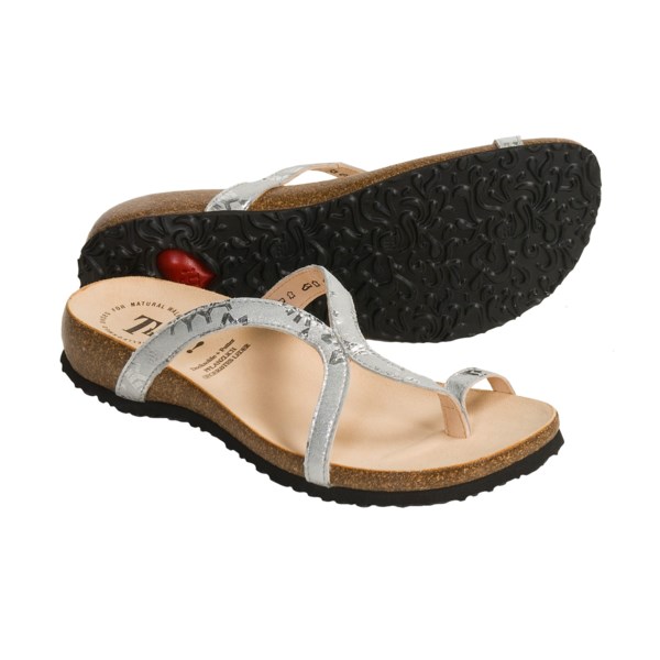 I remember a week ago. I see Think! Julia Sandals - Leather (For Women) sale at many of the online store. CLOSEOUTS . Just when you thought the slip-on summer sandal couldn't be any cuter, Think! busts onto the scene with the Julia sandal. A chic toe loop and two curving leather straps intersect over the instep for a totally unique, foot-flattering look. Leather upper and lining Suede cork-latex footbed EVA outsole Medium width Made in Germany or Hungary Visit our Shoe Sizing Guide Available Colors: BLACK CAPRA, SILVER EFFECT. Sizes: 36, 37, 38, 39, 40, 41, 42. Read more Compare prices from various online stores: Here