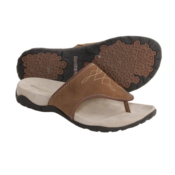 I remember a few days ago. I found Rockport Charah Thong Sandals (For Women) selling at many of the online store. CLOSEOUTS . As charming as it is comfortable, Rockport's Charah thong sandal is crafted from soft nubuck and accented with graphical stitching for extra zing. Nubuck leather upper Suede-covered footbed is cushioned in high-density foam Shock-absorbent EVA midsole Sticky rubber outsole keeps your footing Made in China Width: M (medium) W (wide) Visit our Shoe Sizing Guide Available Colors: BROWN/DARK BROWN. Sizes: 5, 5.5, 6, 6.5, 7, 7.5, 8, 8.5, 9, 9.5, 10, 11. Read more >> Compare prices from different online stores